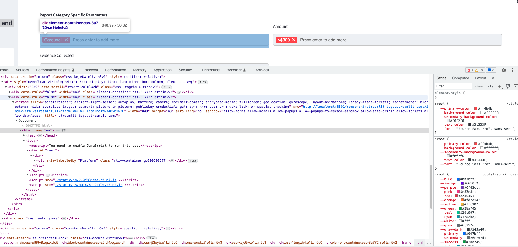 I am new to streamlit and trying to create an application which includes multiple tags object. The tags have a preset color set to red. I would like to have different color set for each tags element I have. For eg., I want to show tags under platform in blue and the tags under amount in purple.